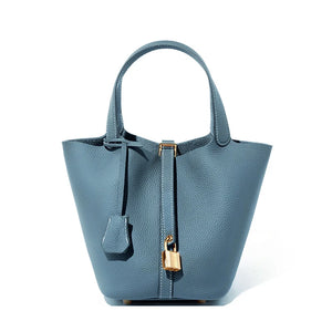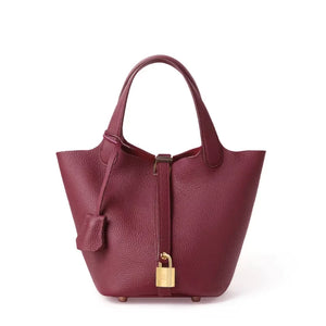 Détails Raffinés : Sa forme Seau (Bucket) compacte est rehaussée par un élégant système de fermeture à cordon (String) et un fermoir décoratif (LOCK) qui sécurise vos affaires.