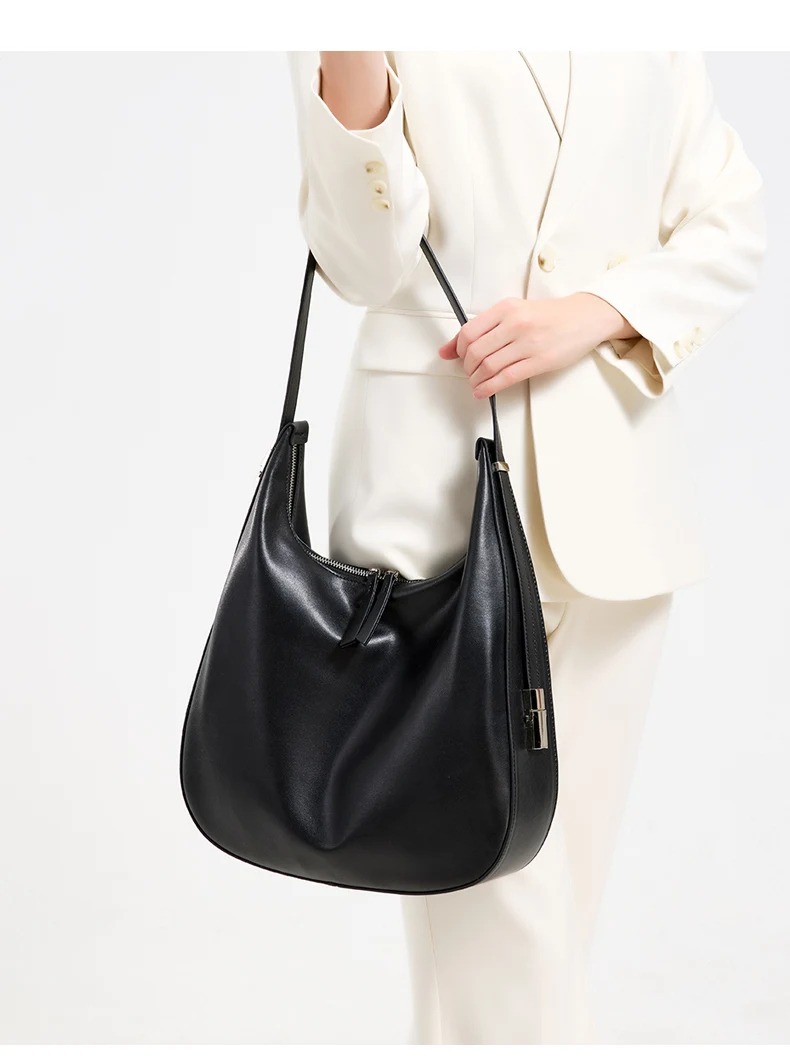 • Forme Iconique : Une silhouette de type Saddle / Half-Moon à grande capacité. Son design épuré sans décoration superflue met en valeur sa coupe architecturale. Il se porte avec élégance à l'épaule ou en Crossbody pour un look urbain et sophistiqué.